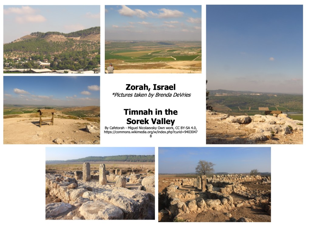 These are some aerial views of the Sorek Valley. The Sorek River winds through the valley and runs into Timnah. The Israelite towns of Zorah and Eshtaol would be in the foothills of the mountains.[80] Philistia was grain country, and Samson’s actions strike at the heart of the Philistine economy.[81] Grain, grapes and olives were the economic and dietary staples![82] Samson destroys people’s livelihood, and creatures of God in the process. To burn these items…would mean an economic disaster for the Philistine people…who were already trying to regain economic and military power after a devastating war with Egypt. This would have also dealt a major blow to overseas trade agreements. THIS act was the act that prompted the Philistines to mobilize against Samson.[83] It was an act of national magnitude![84] And it was an act against their god—Dagon—who was said to be the god of grain![85] As in the days of the Israelites’ slavery in Egypt, God uses Samson’s actions to show that HE is sovereign over all gods! And he is unwilling to share his glory with anyone![86]